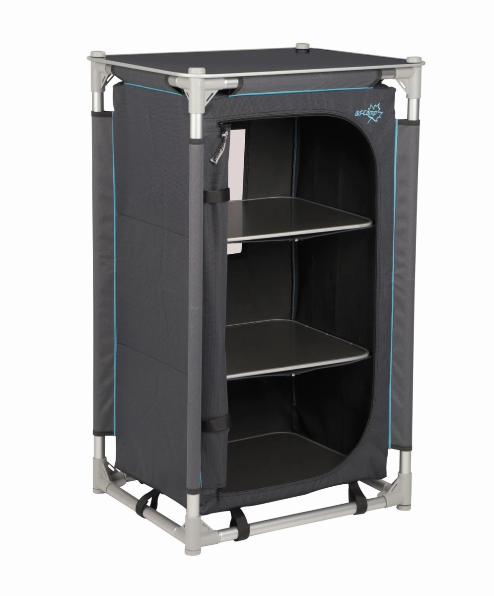 De Bo-Camp legkast Emerald is uitgevoerd met een aluminium frame en is voorzien van een luxe two-tone 600D polyester hoes, 4 verstelbare poten, 3 legplanken afgewerkt met aluminium randen en fraai oplegblad. Met zijvakken, en een luxe draagtas.