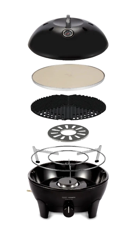 - Veelzijdig koken – BBQ-rooster, pizzasteen en percolatorhouder voor uiteenlopende gerechten