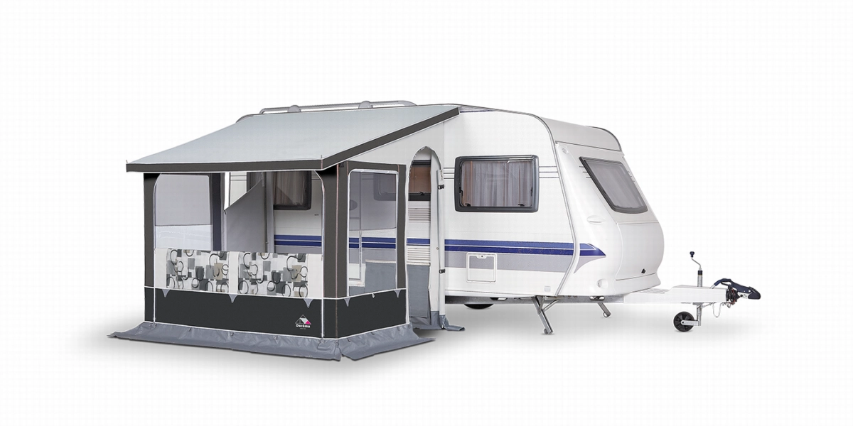 De Dorema Oslo is een 4-seizoenen tent die uitermate geschikt als wintertent en het PVC gecoate polysester maakt dat de tent gemakkelijk te reinigen is. De Oslo is een universele tent voor caravans met een railhoogte van 235-255 cm. Beide zijwanden beschikken over een deur en gaaspanelen en de voorwand is zowel neerrolbaar als volledig uitritsbaar.