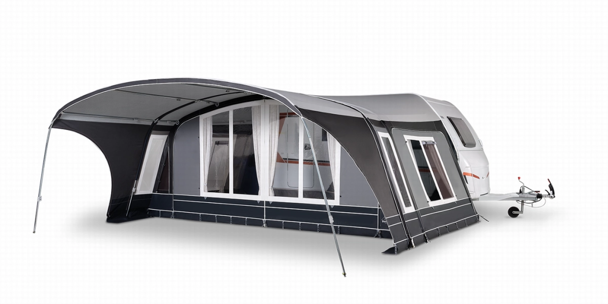 Gebaseerd op de succesvolle gebogen voortenten, heeft Doréma de Onyx 270 voortent geïntroduceerd. Deze 270 cm diepe voortent heeft een modern design en beschikt standaard over een vast aangestikte petluifel van 50 cm diep. Dit zorgt voor een droge instap. De voortent heeft een goede afwatering en wordt afgespannen met ladderspanners, waardoor het doek mooi strak te zetten is.
