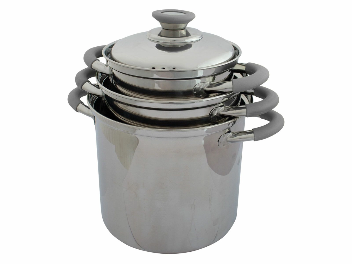 Deze hoogwaardige RVS pannenset bestaat uit drie pannen met bijpassende deksels en is ideaal voor kampeerders door de dunne bodem. De pannen zijn uitgerust met hittebestendige en beschermende siliconen handgrepen voor veilig en comfortabel gebruik.Belangrijkste kenmerken: