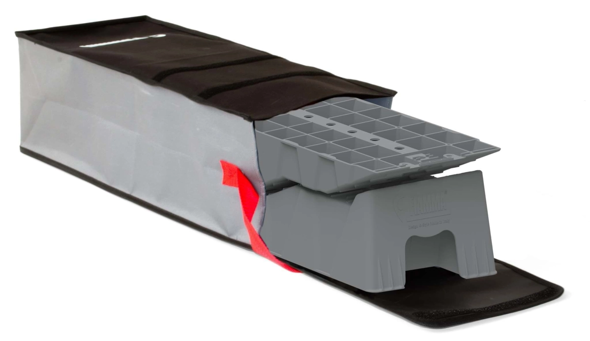 Met de Fiamma Kit Level Up Jumbo Stelt u uw camper gemakkelijk op hoogte af. Het niveaublok heeft hoge draagkracht en een brede afmeting voor een betere ondersteuning.