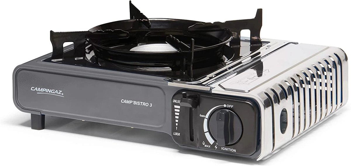 Het Campingaz Bistro 3 kooktoestel is een robuust, praktisch en veilig 1-pits gaskomfoor. De gaspit heeft 2 geïntegreerde veiligheidssystemen, die ervoor zorgen dat u ten alle tijden veilig kunt koken. Daarnaast heeft het kooktoestel een roestvrijstalen cartouche en verbeterde pandrager, die zorgen voor extra stabiliteit, en daarmee nog meer veiligheid. Het gasstel wordt geleverd met een draagkoffer van hard plastic, voor gemakkelijk vervoer en opslag.