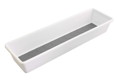 Deze praktische kunststof 1- vaks bestekbak van H.A.B.A. in een fris witte kleur heeft 4 rubber voetjes zodat deze niet kan schuiven in de besteklade van uw caravan of camper. Ook heeft de H.A.B.A. bestekbak een bodembekleding van rubber zodat uw bestek niet schuift in de bestekbak.