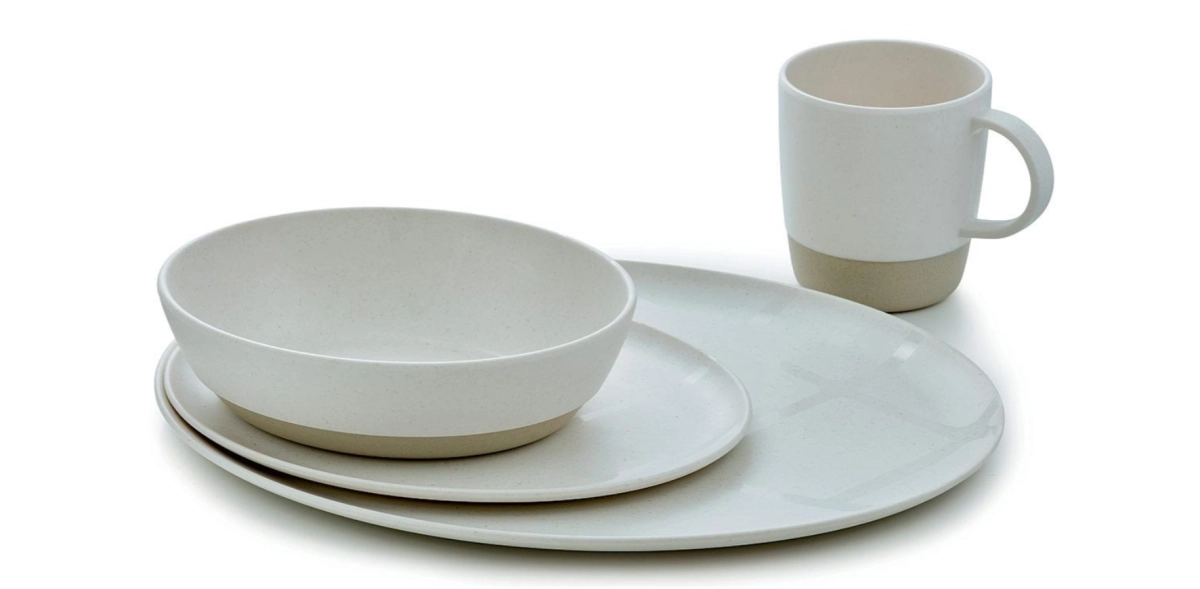 De borden en ontbijtkommen zijn ovaal en nemen weinig ruimte in de kasten in. Verder hebben de borden en ontbijtkommen een siliconen ring aan de onderkant om wegglijden te voorkomen.