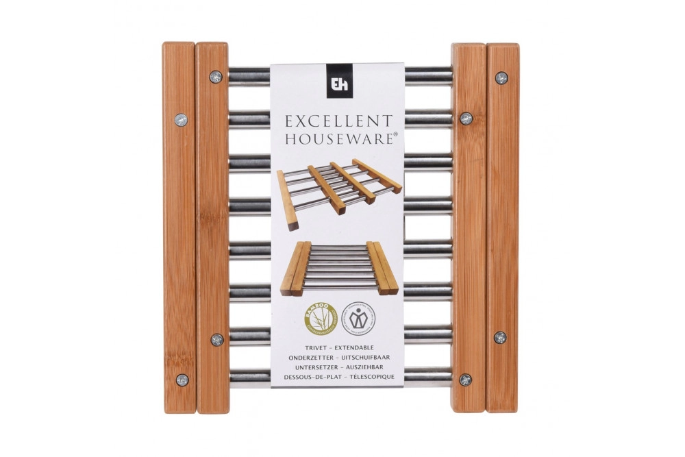 Deze onderzetters van RVS en bamboe zijn ideaal om onder uw pannen te leggen en uw tafel te beschermen tegen de hitte van de pan. De combinatie van RVS en bamboe geeft de onderzetter een leuke uitstraling op uw tafel.