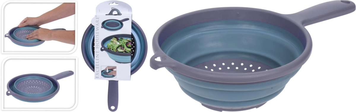 Dit opvouwbare vergiet is ideaal om mee te nemen tijdens uw vakantie. De vergiet neemt namelijk weinig ruimte in beslag, doordat deze opgevouwen kan worden, maar heeft zelf wel een doorsnede van 23 cm. Daarnaast is het vergiet voorzien van een handvat.