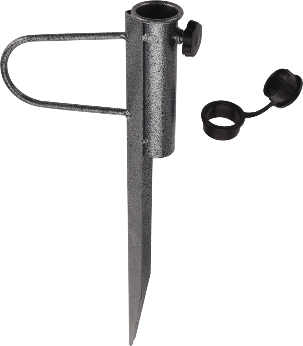 Met deze metalen parasolhouder ligt u altijd en overal in de schaduw. De houder kan in het strandzand of in de gewone grond gebruikt worden door de houder in de grond te steken. De parasolhouder is geschikt voor parasols met een diameter 25/32/35 mm. Bij de parasolhouder wordt een handige afsluitdop geleverd.