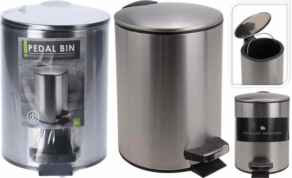 Een fraaie pedaalemmer met een inhoud van 3 Liter. De pedaalemmer heeft een metalen behuizing en een kunststof emmer.