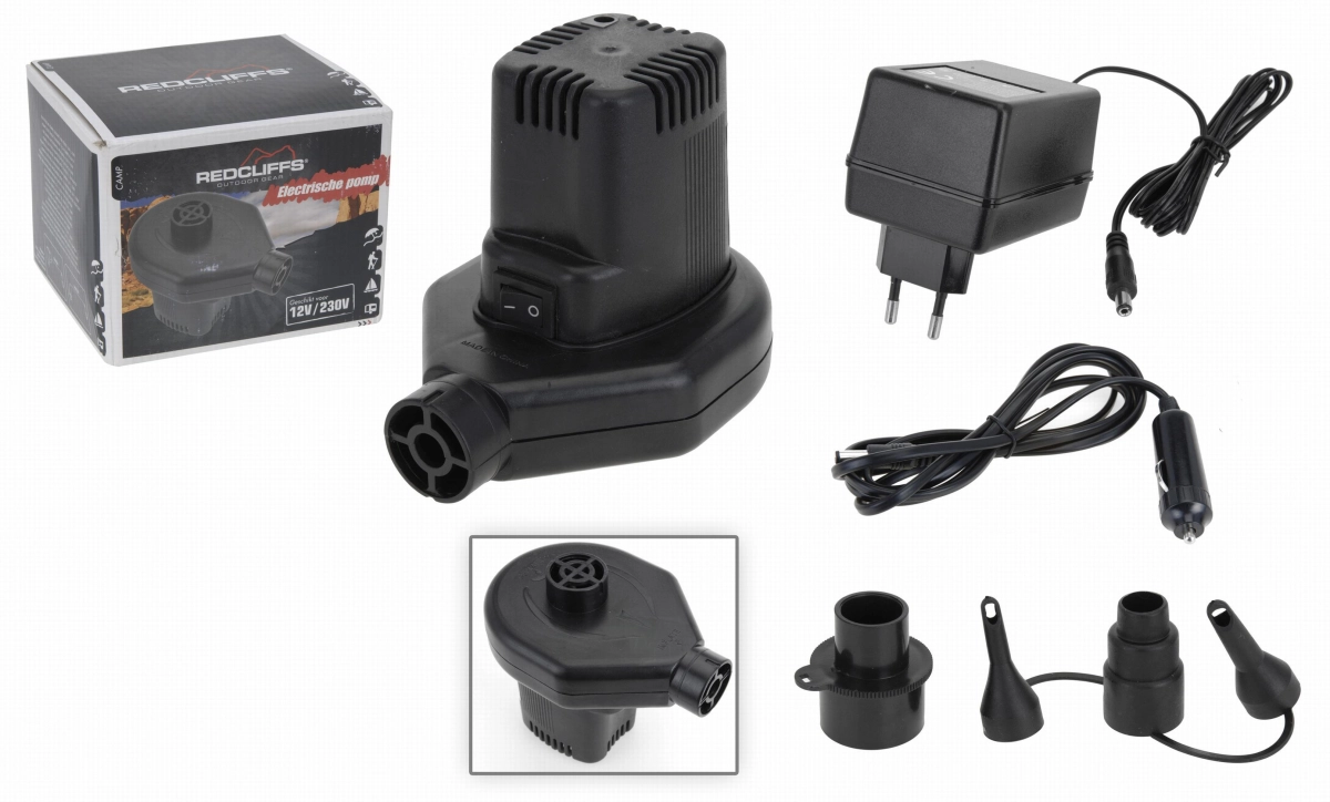 De Redcliffs luchtbedpomp is een handige en krachtige oplossing voor het snel oppompen en leeg laten lopen van luchtbedden, slaapmatten, boten en meer. Dankzij de twee voedingsmogelijkheden is de pomp zowel thuis als onderweg te gebruiken. Diverse verloopstukjes maken de pomp geschikt voor verschillende toepassingen.Belangrijkste kenmerken: