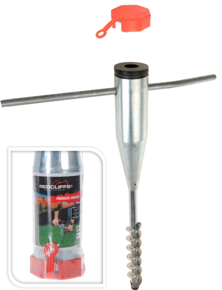 Met de Redcliffs metalen parasolhouder plaatst u uw parasol stevig en stabiel in de grond. Dankzij het slimme ontwerp boort u de houder eenvoudig in zowel zachte als harde ondergrond. Met de vijf meegeleverde adapters is de houder geschikt voor verschillende buisdiameters, waardoor u hem veelzijdig kunt gebruiken in de tuin, op de camping of op het strand.Belangrijkste kenmerken