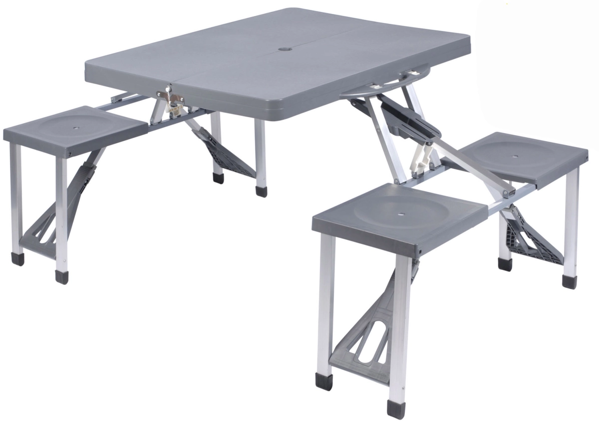 Deze compacte picknicktafel heeft aluminium frame en een watervast tafelblad en zittingen. De tafel is voorzien van een inklapbeveiliging, zodat de picknicktafel in gebruik is niet kan inklappen.