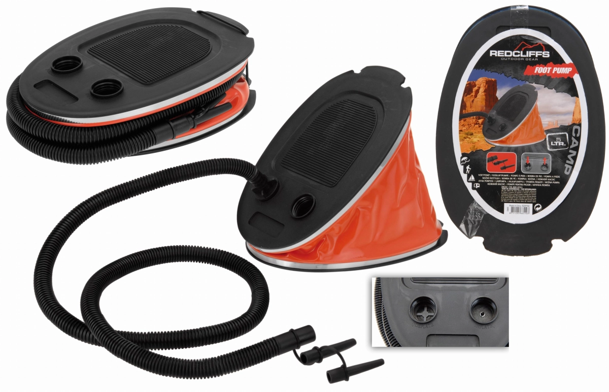 Deze praktische voetpomp van Redcliffs is ideaal voor kampeerders en watersporters. Met een inhoud van 5 liter is hij krachtig genoeg om luchtbedden, opblaasboten of andere artikelen snel op te pompen of leeg te laten lopen. Dankzij het dubbele ventielsysteem gebruik je dezelfde pomp voor beide functies: opblazen én afzuigen. Compact, licht en eenvoudig in gebruik – perfect voor onderweg!Belangrijkste kenmerken: