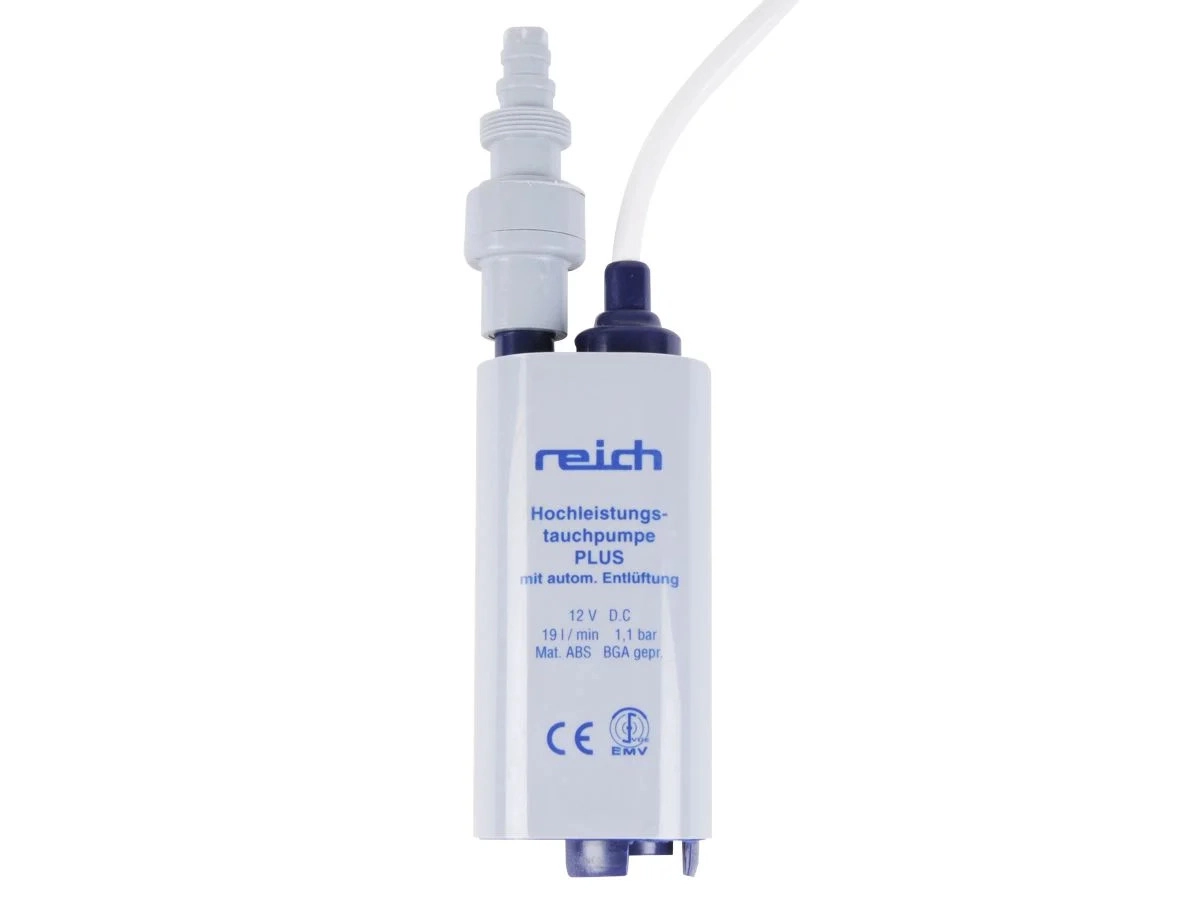 Deze luxe en betrouwbare dompelpomp van Reich heeft een inhoud van 19 liter en beschikt over een terugslagventiel. Een terugslagventiel zorgt ervoordat het water in de leidingen niet terug de tank inloopt, zo heeft u altijd direct water als u de kraan aanzet. Deze Reich dompelpomp is uitgevoerd met automatische ontluchting doormiddel van 2 balletjes in de pomp die eventuele luchtbelletjes verwijderen, dit zorgt ervoor dat er altijd een vloeiende en krachtige straal uit de kraan komt. De dompelpomp is geschikt voor slangen met Ø10-14 mm, heeft een waterdruk van 1,1 bar en werkt op 12V.