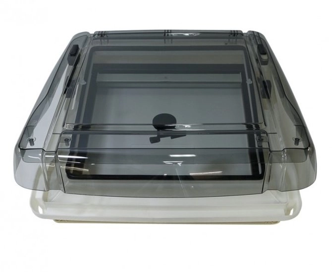 Het Remitop dakluik combineert een extreem plat binnenframe met een aerodynamische kap voor een strakke uitstraling en optimale ventilatie. Het dakluik is voorzien van een vliegenhor en verduistering, waardoor u privacy en insectenbescherming krijgt. Dankzij de scharnieren aan de voorzijde is het luik op drie standen te openen, zodat u zelf de gewenste luchtcirculatie bepaalt. De kap heeft een donkere, transparante kleur, waardoor er licht binnenkomt zonder dat inkijk mogelijk is.Belangrijkste kenmerken: