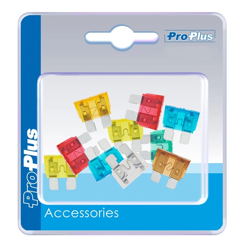 In deze zekeringenset van ProPlus zitten 10 zekeringen, waarvan 7 verschillende stroomsterktes.