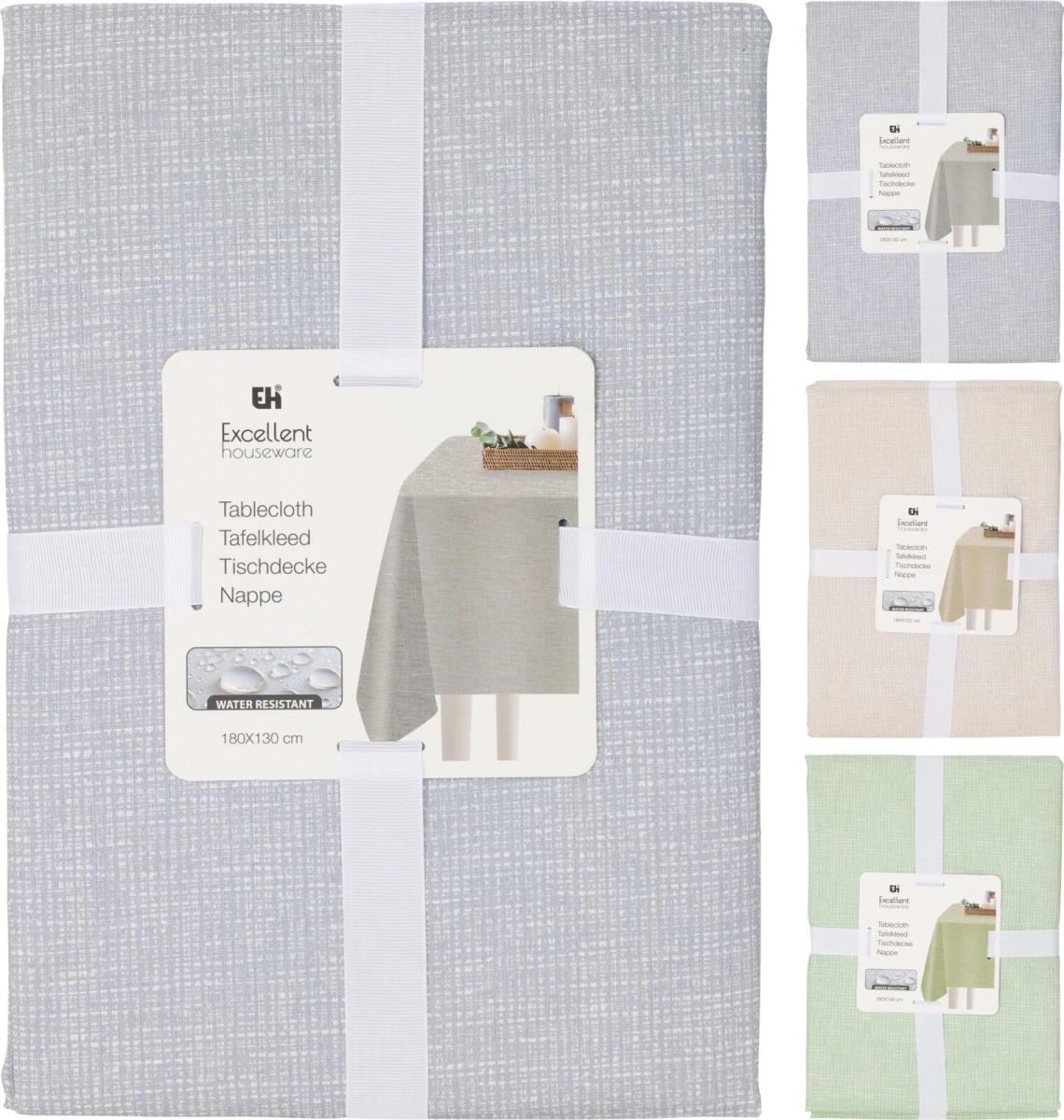 Dit effen tafelkleed is gemaakt van waterafstotend materiaal en ideaal voor dagelijks gebruik of een gezellig diner. Het beschermt je tafel tegen vlekken en vocht, en is makkelijk schoon te maken. Verkrijgbaar in drie neutrale kleuren – grijs, beige en groen – zodat het altijd past bij jouw interieur of tuinstijl.Belangrijkste kenmerken: