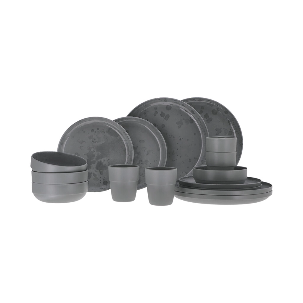Travellife Palma 16-delige Serviesset donker grijs – Stijlvol en duurzaam servies met keramieklook