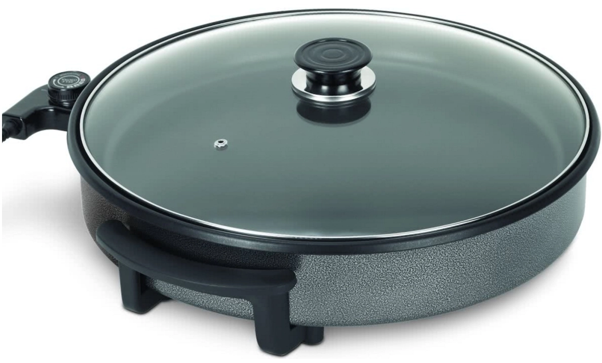 In de Tristar hapjespan PZ-2963 kunt u werkelijk alles bakken en braden; van aardappels tot vis. De pan heeft een doorsnede van 30 cm en is voorzien van een glazen deksel en een afneembare thermostaat op snoer.