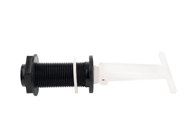 Het ventiel wordt gebruikt om je watertank leeg te laten lopen. Door de plug uit de doorvoer te trekken loopt vrijwel je hele watertank leeg.