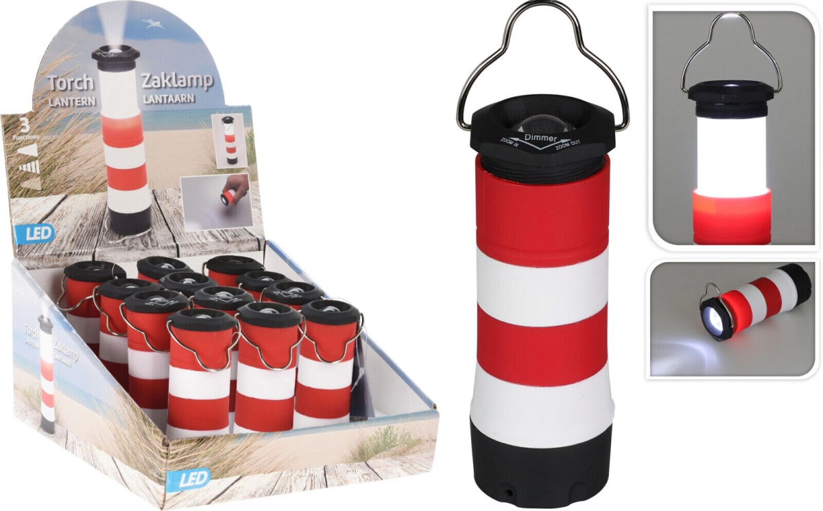 Deze leuke vuurtoren lamp kan door het uitschuif design gebruikt worden als hand zaklamp of als staande lamp op uw tafel. Deze lamp is dus ideaal als verlichting van uw pad of voor op tafel tijdens het spelen van een spelletje bijvoorbeeld.